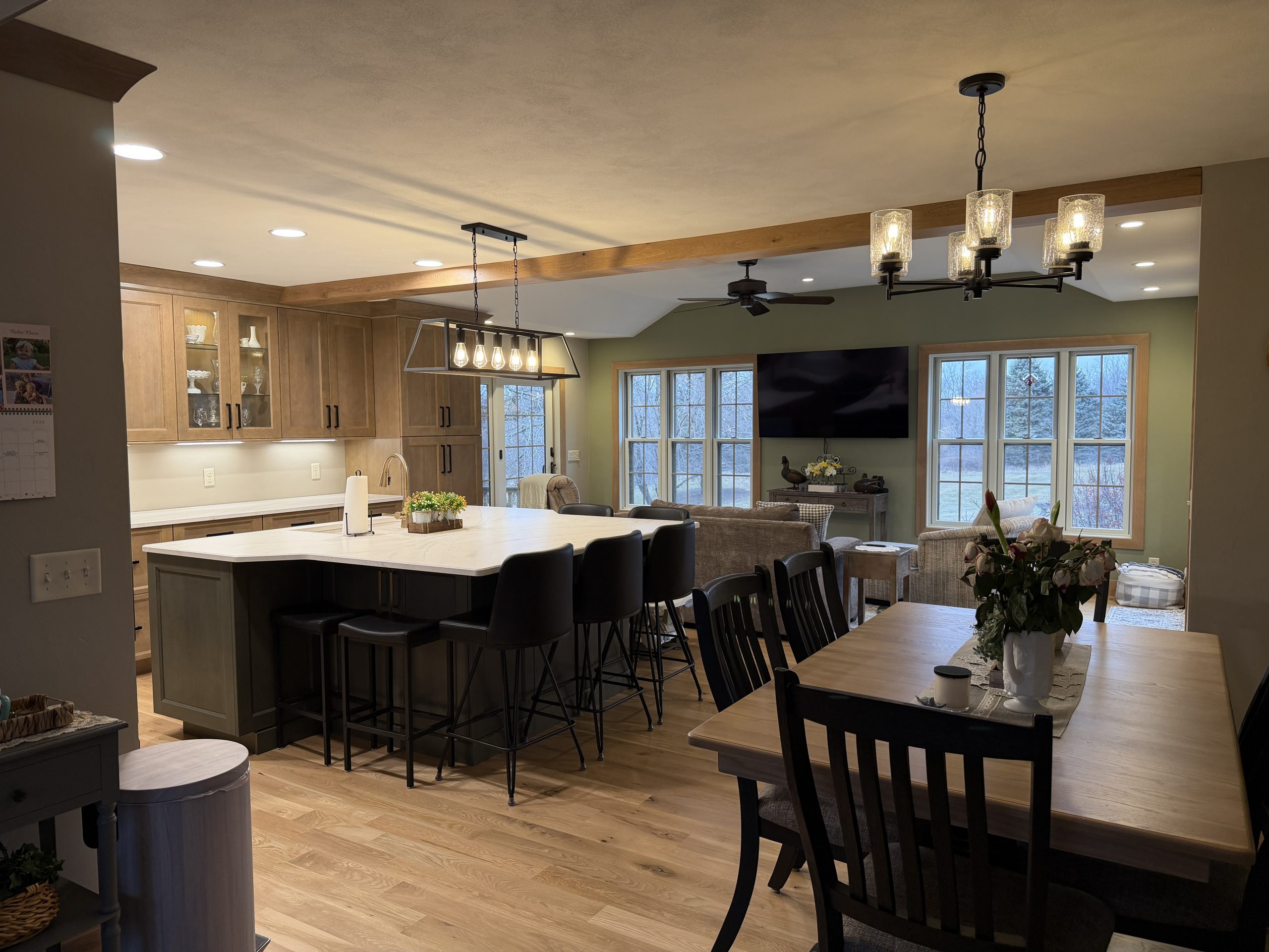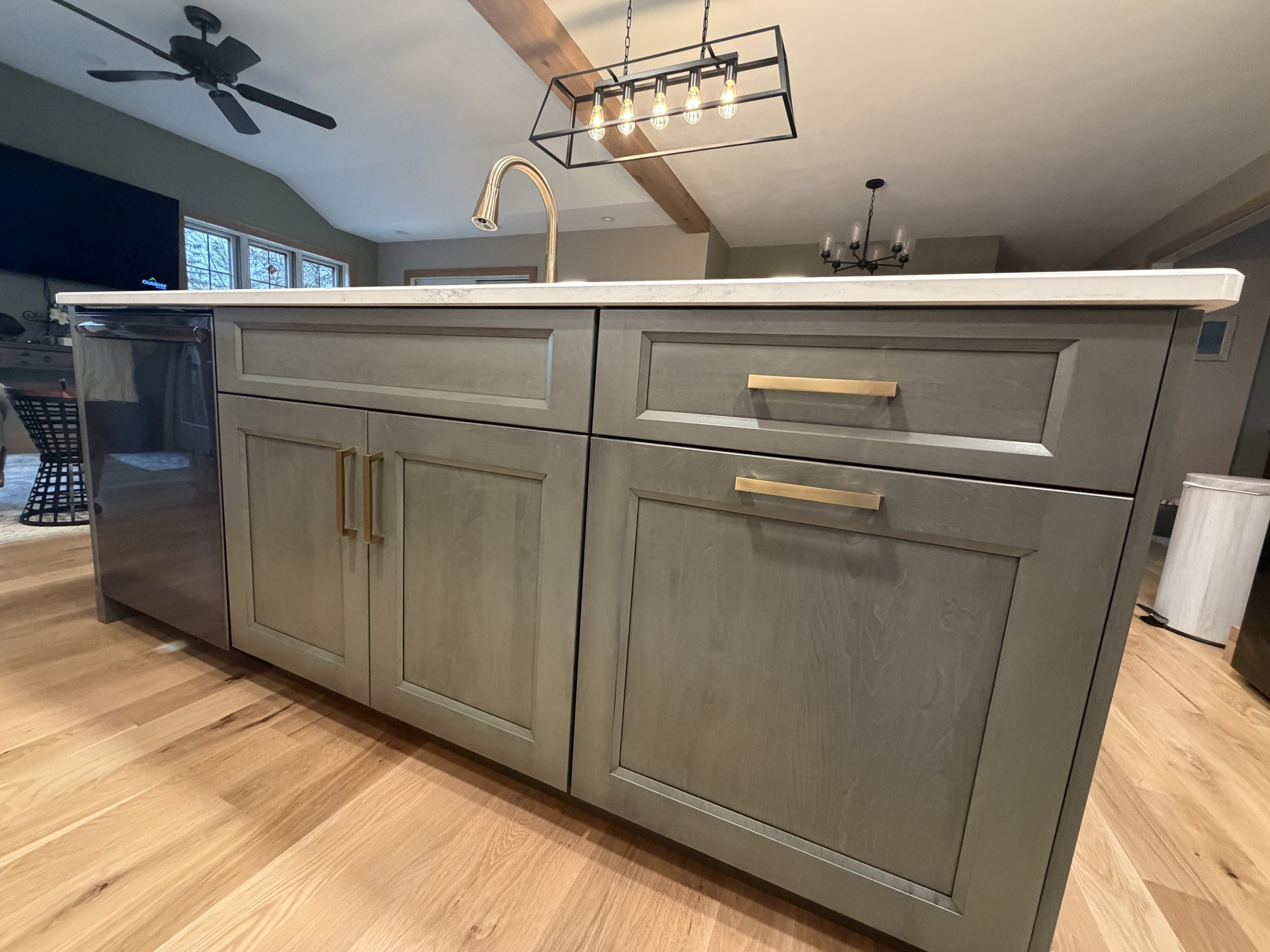 Cathedral Ceiling Remodel Eclipse Frameless Cabinetry, Maple Wood, Full Overlay, Bristol Door Style, Silas Stain with Graphite Highlight